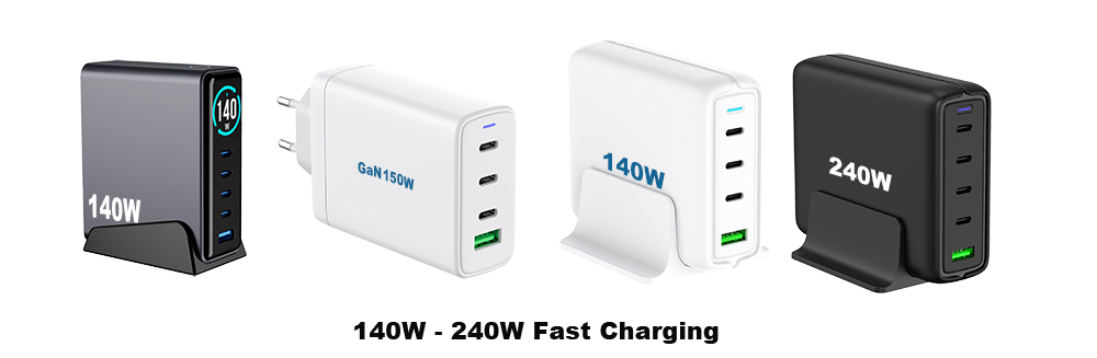 · 140-W-240-W-Ladegeräte sind hauptsächlich für Laptops und Multi-Port-Hubs vorgesehen